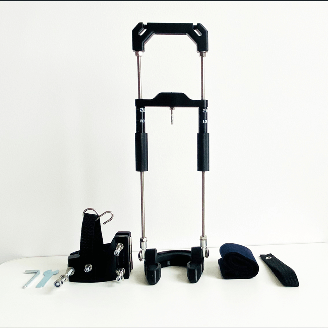 The complete set includes: 1 thickened extension bracket + 1 clamp + accessory kit (screwdriver, wrench, 2 slings of different lengths, fleece-lined wrap).